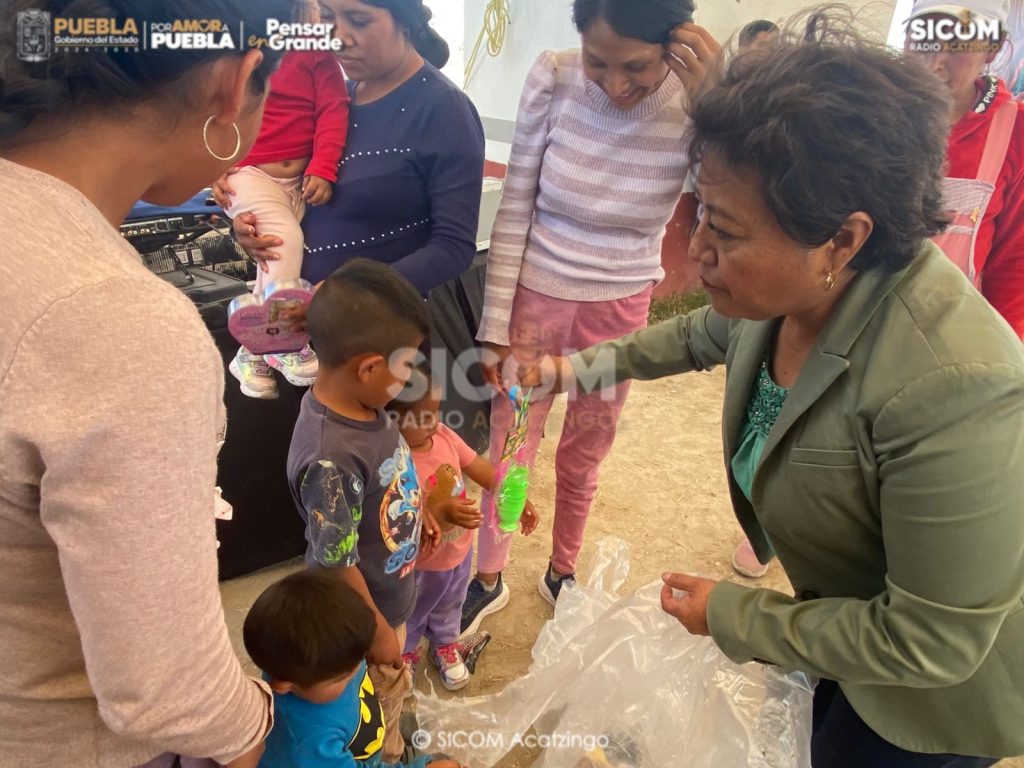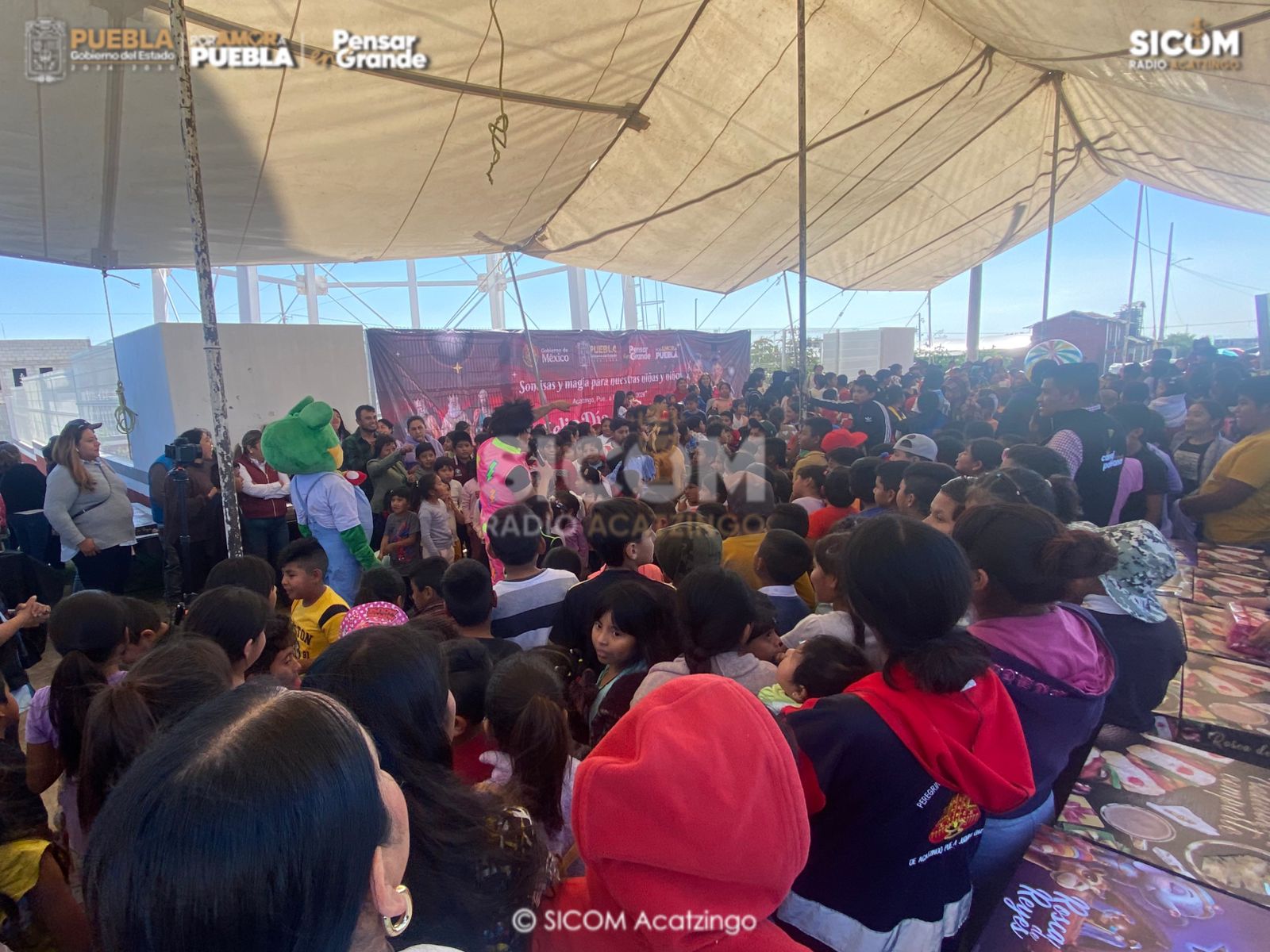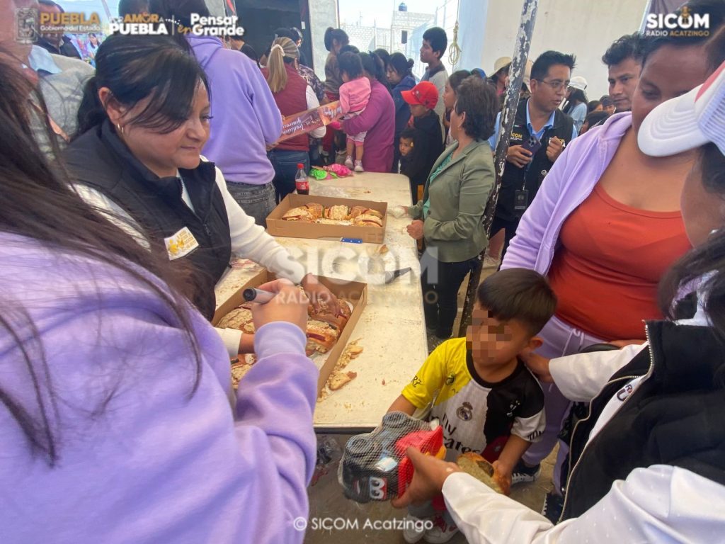 Acatzingo, Puebla. En una mega entrega simultánea a nivel estatal más de 2 mil niñas y niños recibieron la alegría de recibir un juguete y compartir la tradicional Rosca de Reyes en la Localidad de la Concepción, Municipio de Acatzingo.