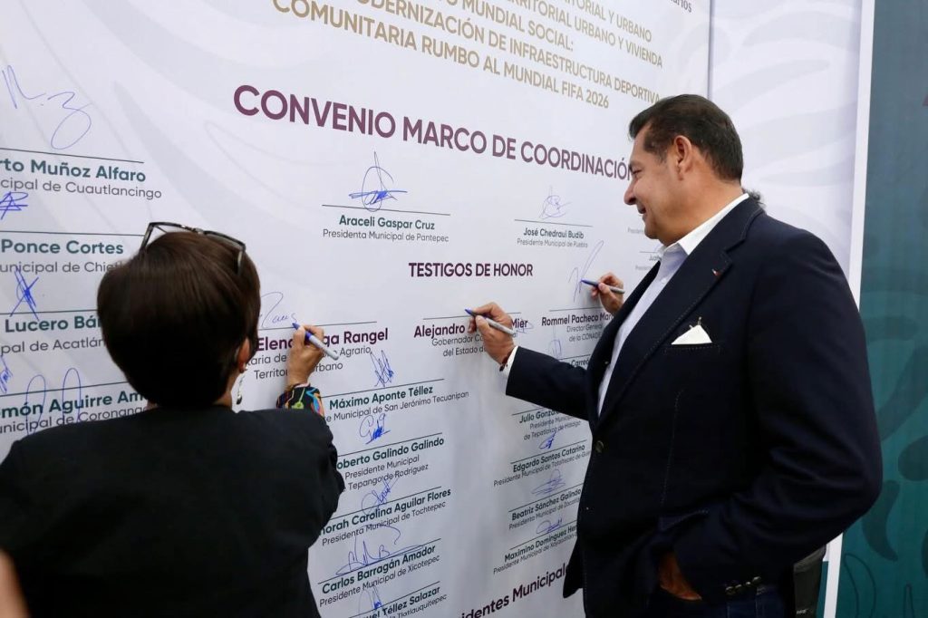 Puebla, Pue.– Con el objetivo de fortalecer el tejido social y garantizar el derecho a la recreación, el gobernador Alejandro Armenta encabezó la firma de un convenio con 30 ayuntamientos, como parte de una estrategia nacional orientada a la modernización de espacios públicos.